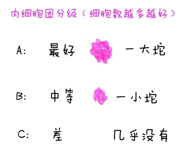 因此在扩张程度相同的前提下,囊胚综合质量从优到劣的常见排序为:AA>AB>BA>BB>AC>BC>CA>CB>CC。